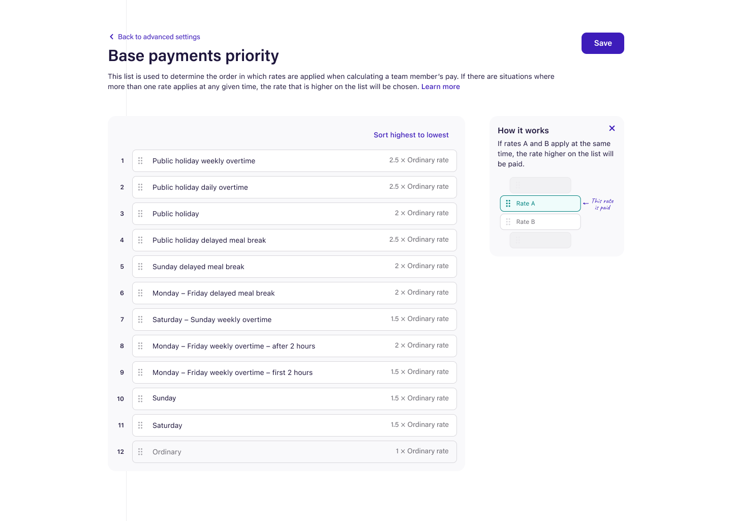 Duplicating pay policies enabled self-serving customers to make minor changes to exisiting Awards and labour laws. This allowed them to be on the latest version of the regulation whilst still allowing for flexibility.